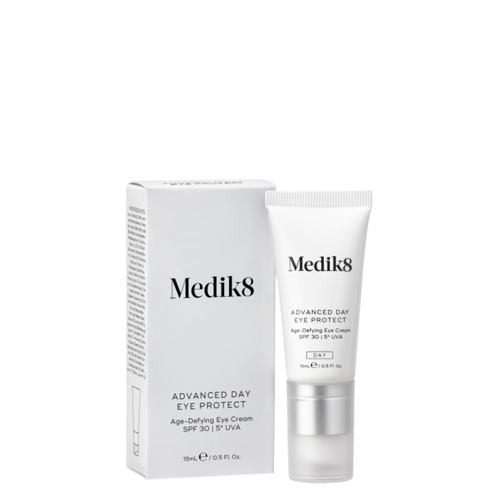 De Medik8 Advanced Day Eye Protect is een oogcreme met SPF die de ooghuid beschermt, voedt en hydrateert. Het gaat huidveroudering door omgevingsfactoren tegen en vermindert wallen en donkere kringen.